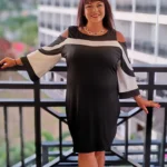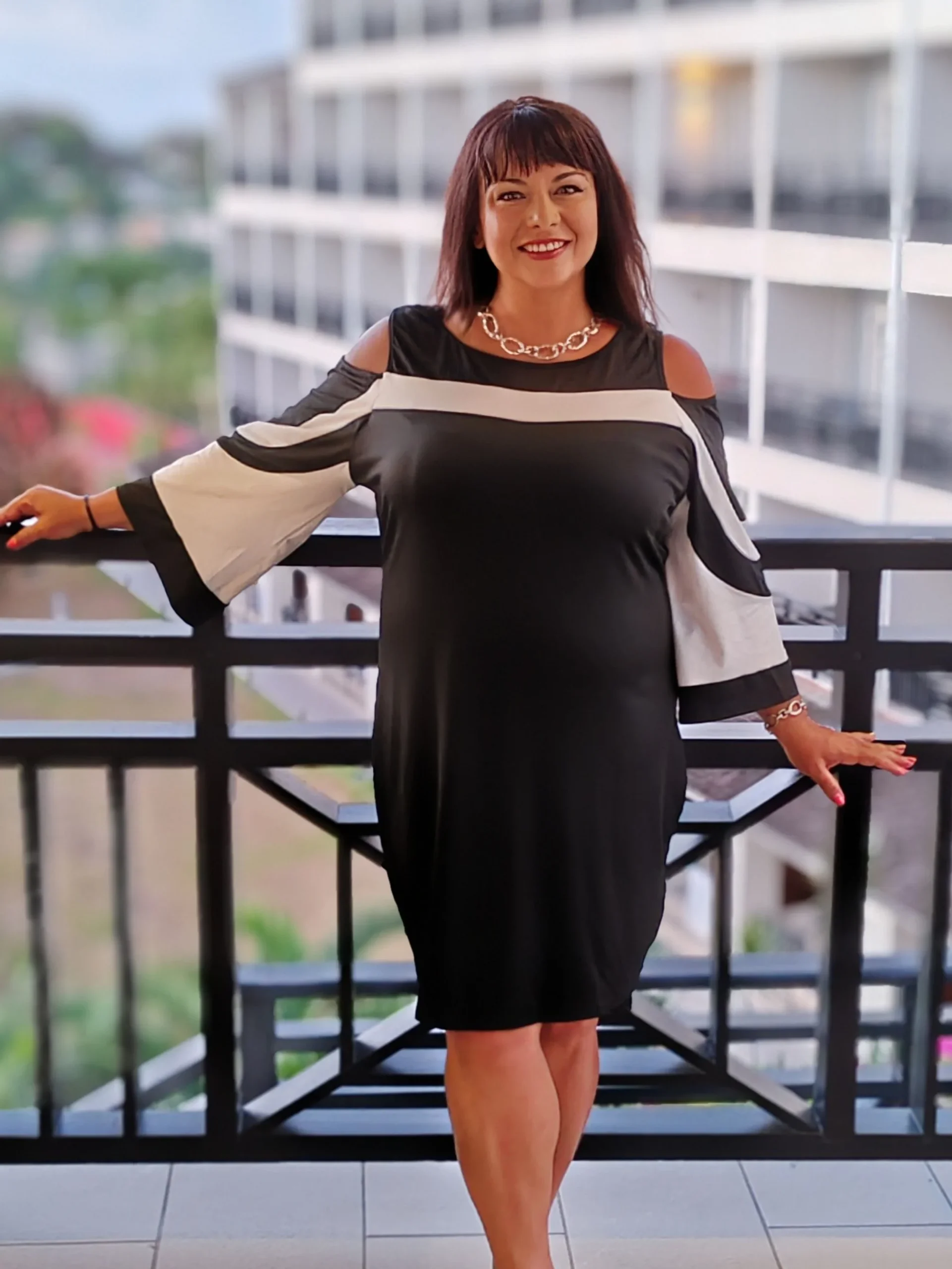 - Különleges mintájú, vállainál vagány kivágással rendelkező, kisszériás nappali ruha molett hölgyek számára.