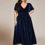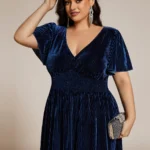 - Midi fazonú alkalmi molett koktélruha puha bársonyból.