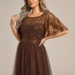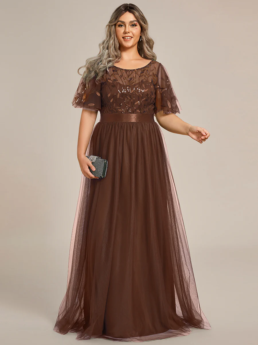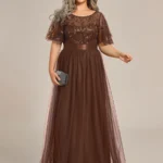 Maxi fazonú flitterrel hímzett áőlomszép tüll ruha, Plus Size hölgyek részére.
