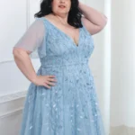 - Mélyen V-dekoltált, ezzel előnyösebbé téve a nyak és a dekoltázs látványát.