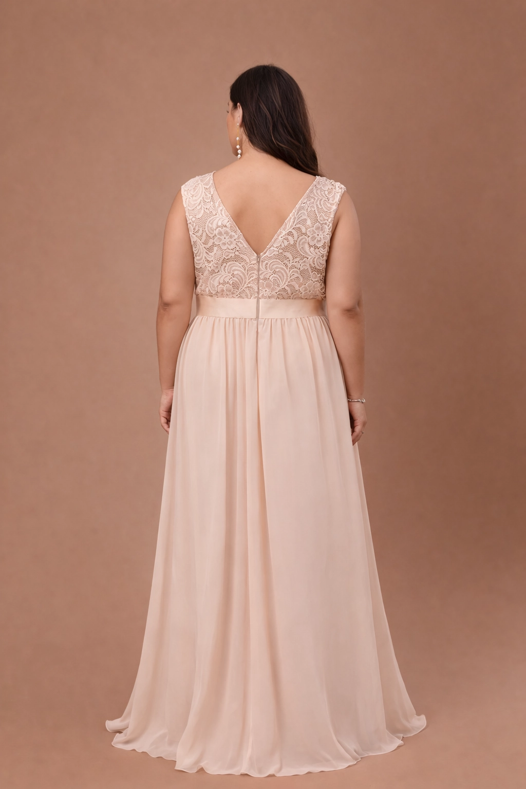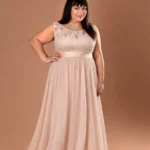 MEGAN, Plus Size csipkés alkalmi maxi ruha PÚDER 54-es méret készleten!
