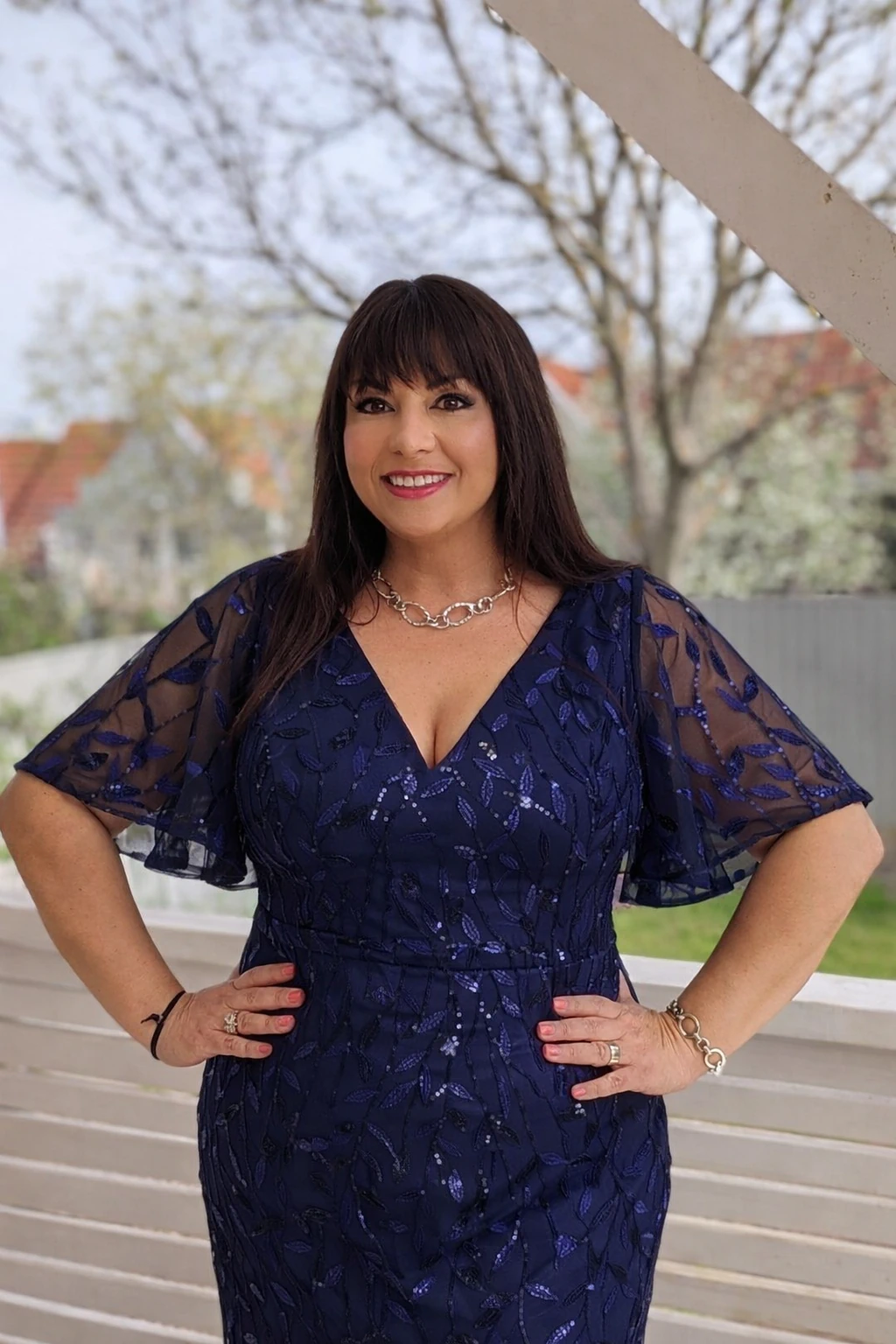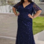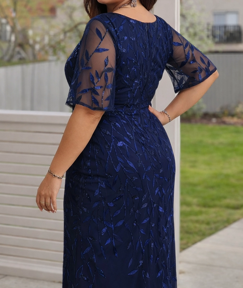 - Maxi fazonú flitteres hímzett estélyi ruha, Plus Size hölgyek részére.