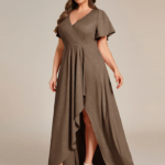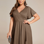 - Midi fazonú, V-dekoltált fiatalos, partyruha Plus size hölgyek számára.